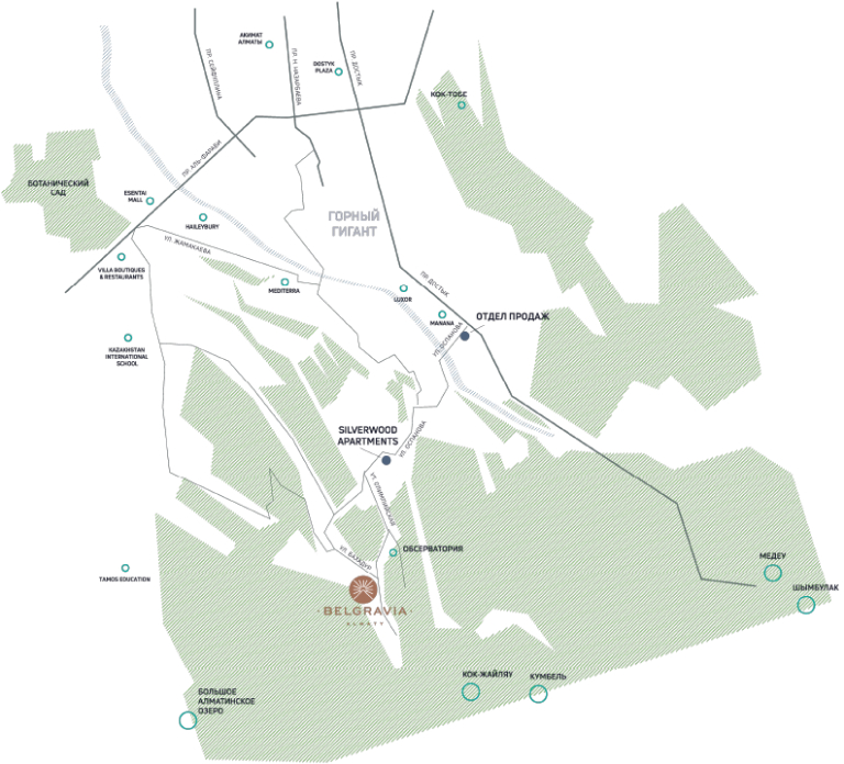 Belgravia расположен в самой оптимальной и выгодной локации Алматы.